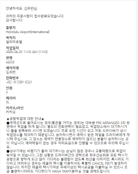 하와이 한인택시 고민 중이라면 매우매우 강력 추천!!! 합니다!!