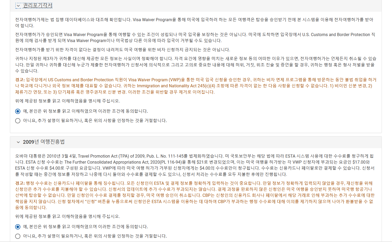한국은 미국 비자면제 프로그램(VWP) 대상국이라 관광 목적이라면 이 ESTA만 신청하면 됩니다.